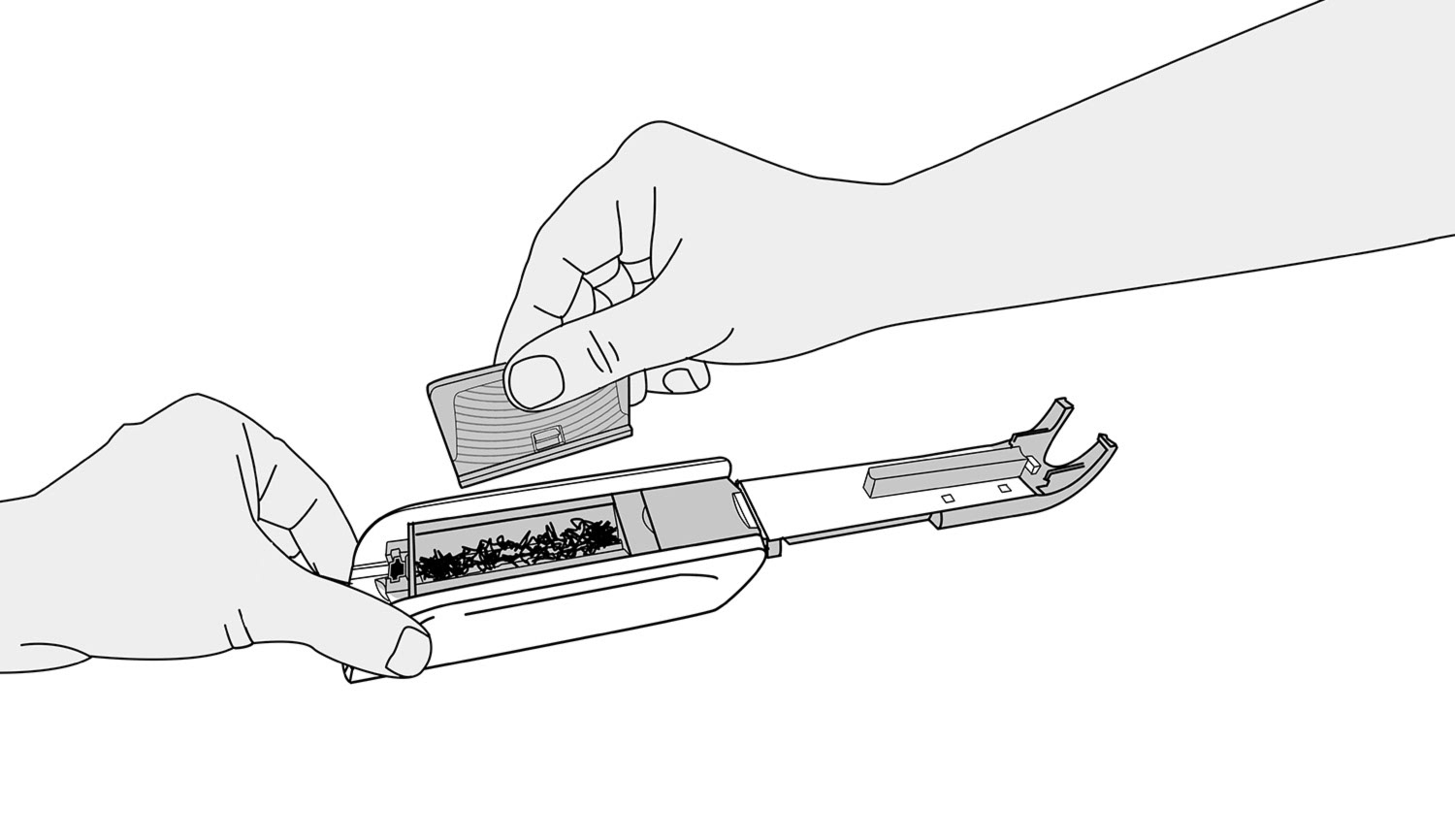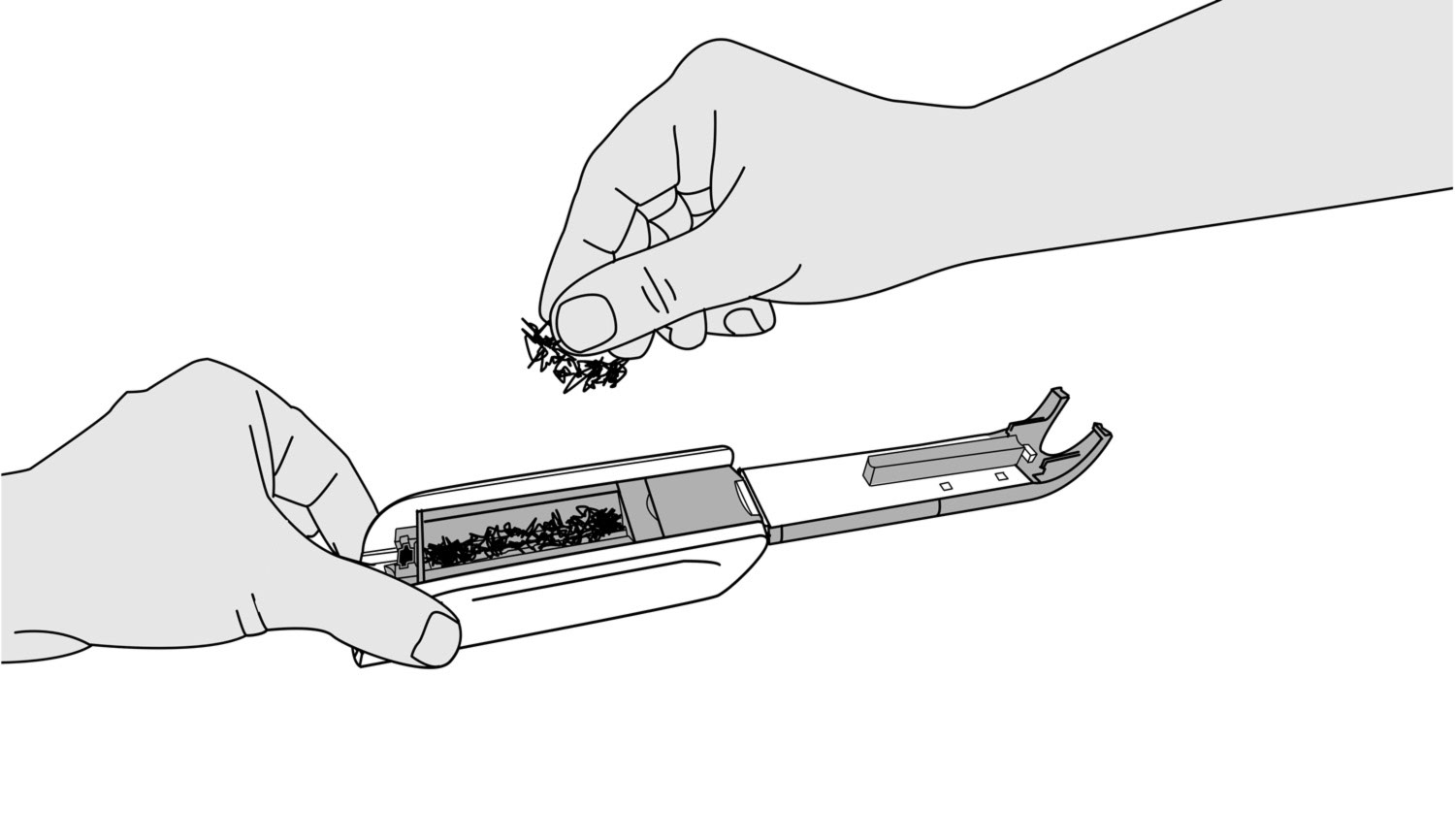 Ich bekam die Gelegenheit, eine Sequenz von Illustrationen zu erstellen, um die Funktionsweise eines Zigarettenstopfgerätes zu veranschaulichen. Für solche feinteiligen Aufgaben eignen sich besonders saubere und klare Linien in den Illustrationen.