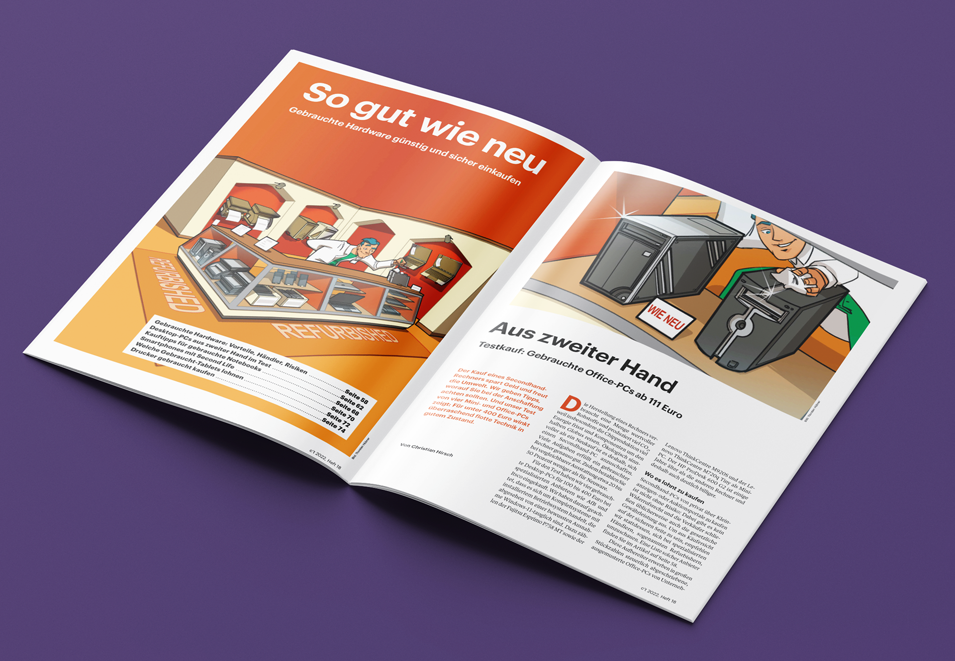 Illustrationen sind ein wertvolles Mittel, um Inhalte zu unterstützen und die Aufmerksamkeit des Lesers auf das Thema zu lenken. Seit Jahren erstelle ich Aufmacherillustrationen für das c't Magazin mit großer Freude und Leidenschaft.